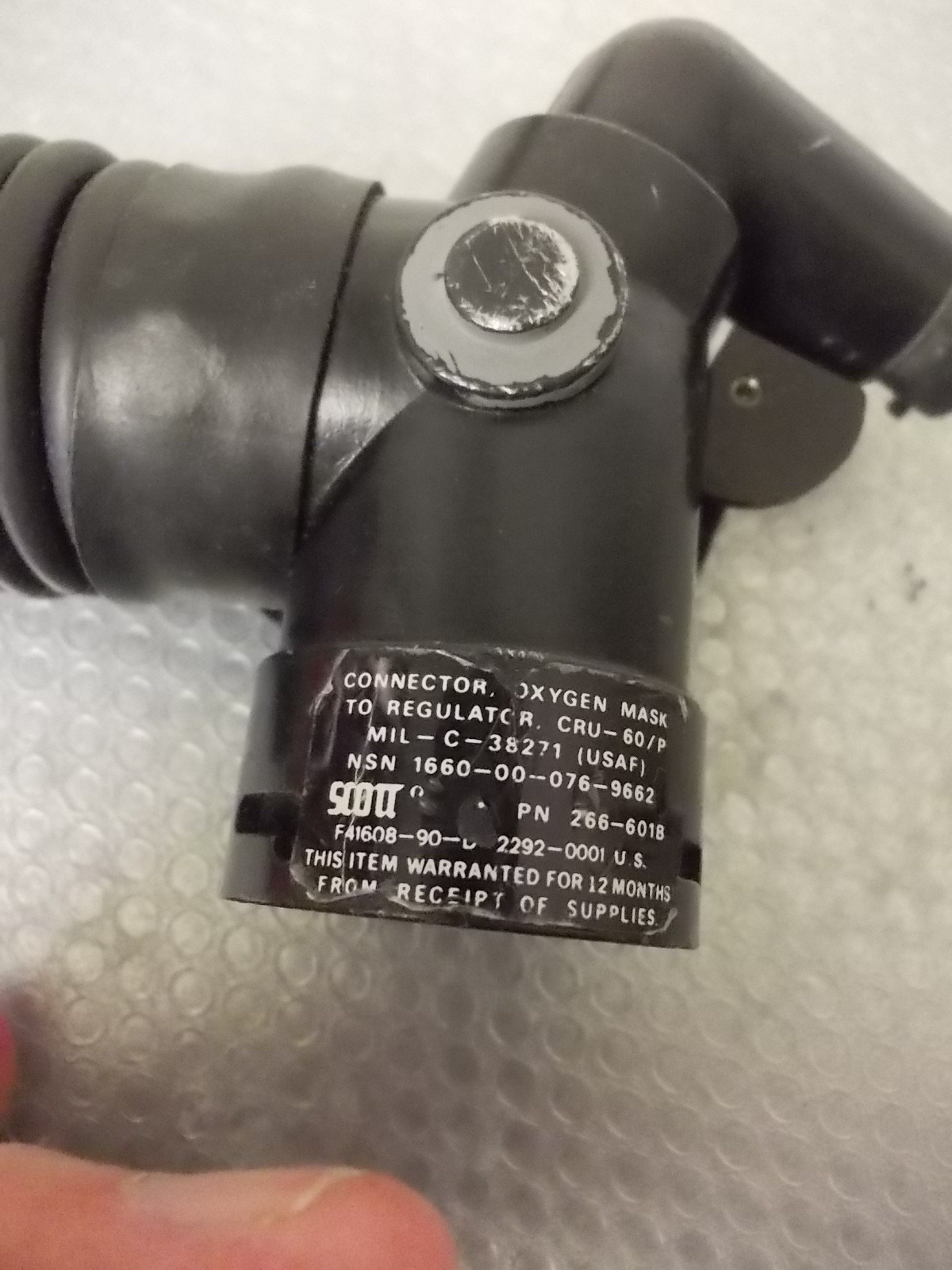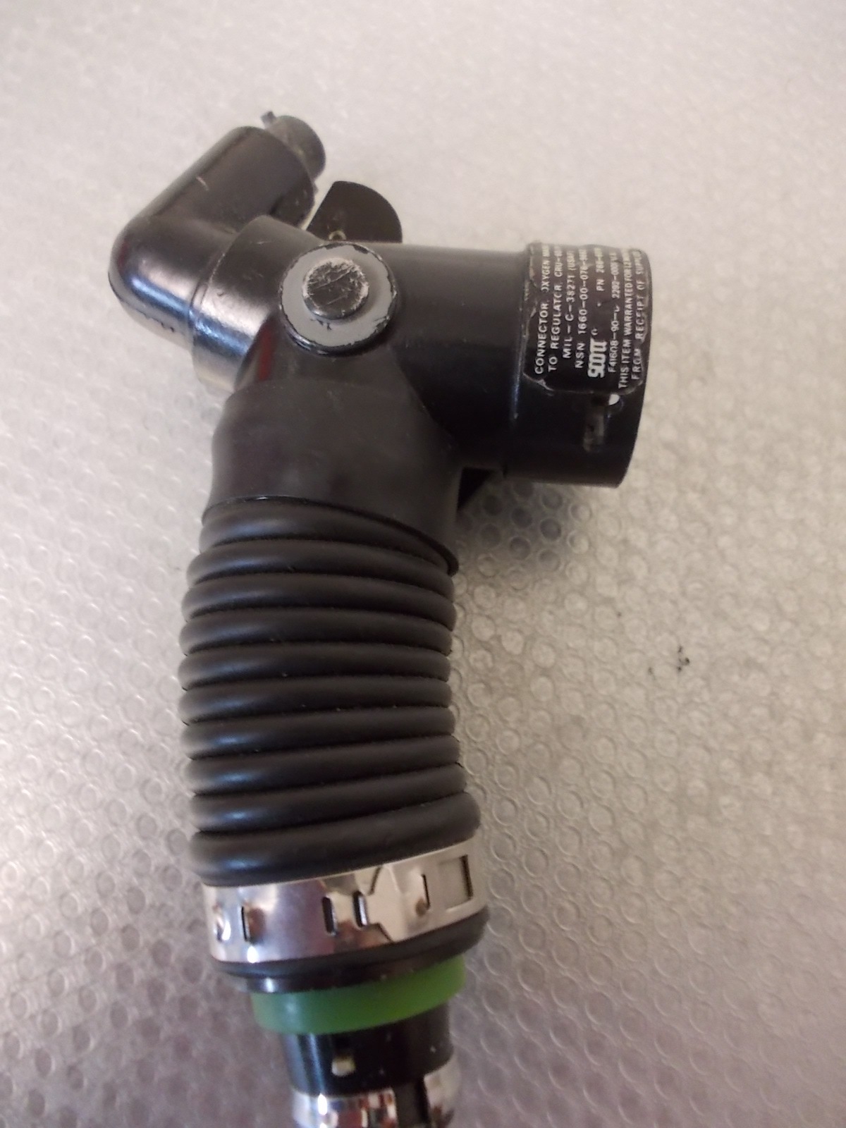 Original CRU-60/P Terminal Oxygen Block, Use on ejection seat aircraft ,Used to connect aircraft oxygen supply hose, bailout bottle emergency oxygen supply hose, oxygen mask hose,. NSN: 1660-00-076-9662 , Exellent Condition , note that all our items are pure collector items or display items. The items are not tested for real use and have no aeronautical exams or clearances. Use is at your own risk !