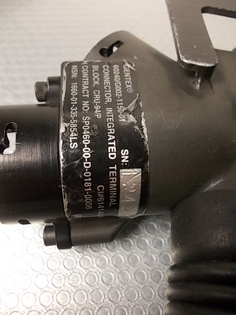 CRU-94/P Connector Integrated Terminal Block, used to connect aircraft oxygen supply hose, bailout bottle emergency oxygen supply hose, oxygen mask hose, and CSU-17/P Counter Pressure Vest, used but very good condition, NSN: 1660-01-335-5854,note that all our items are pure collector items or display items. The items are not tested for real use and have no aeronautical exams or clearances. Use is at your own risk !
