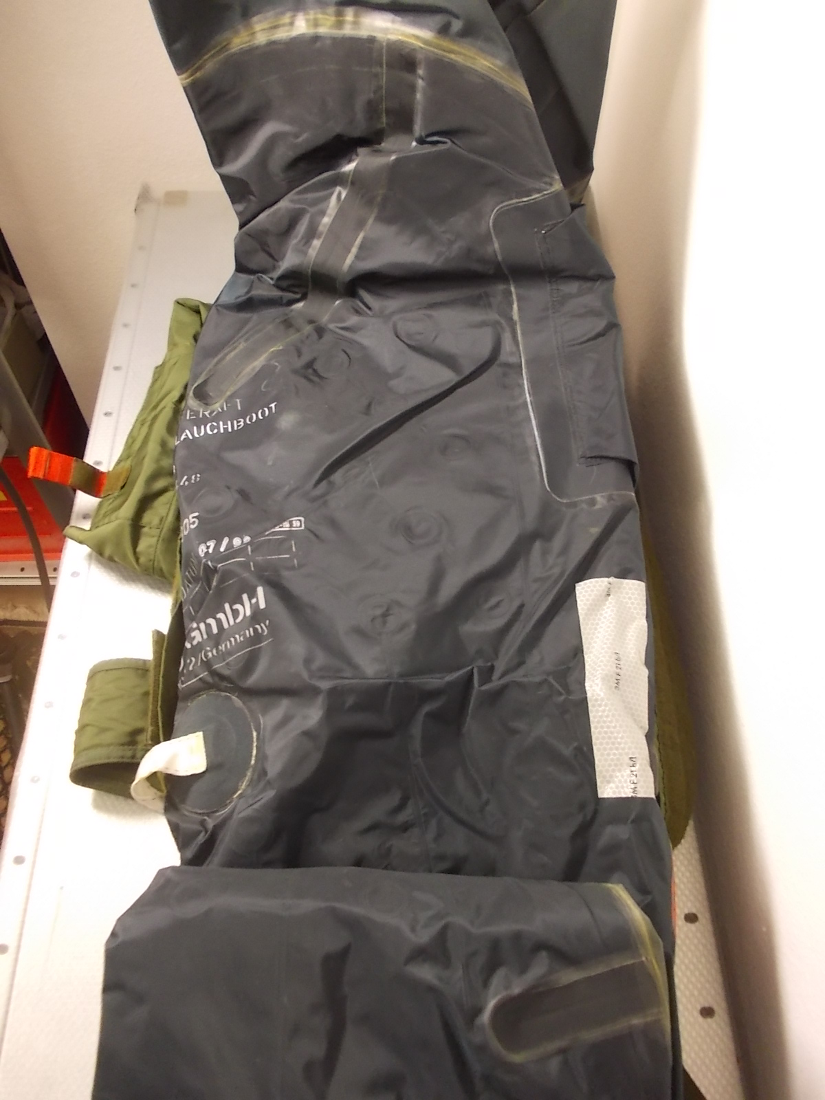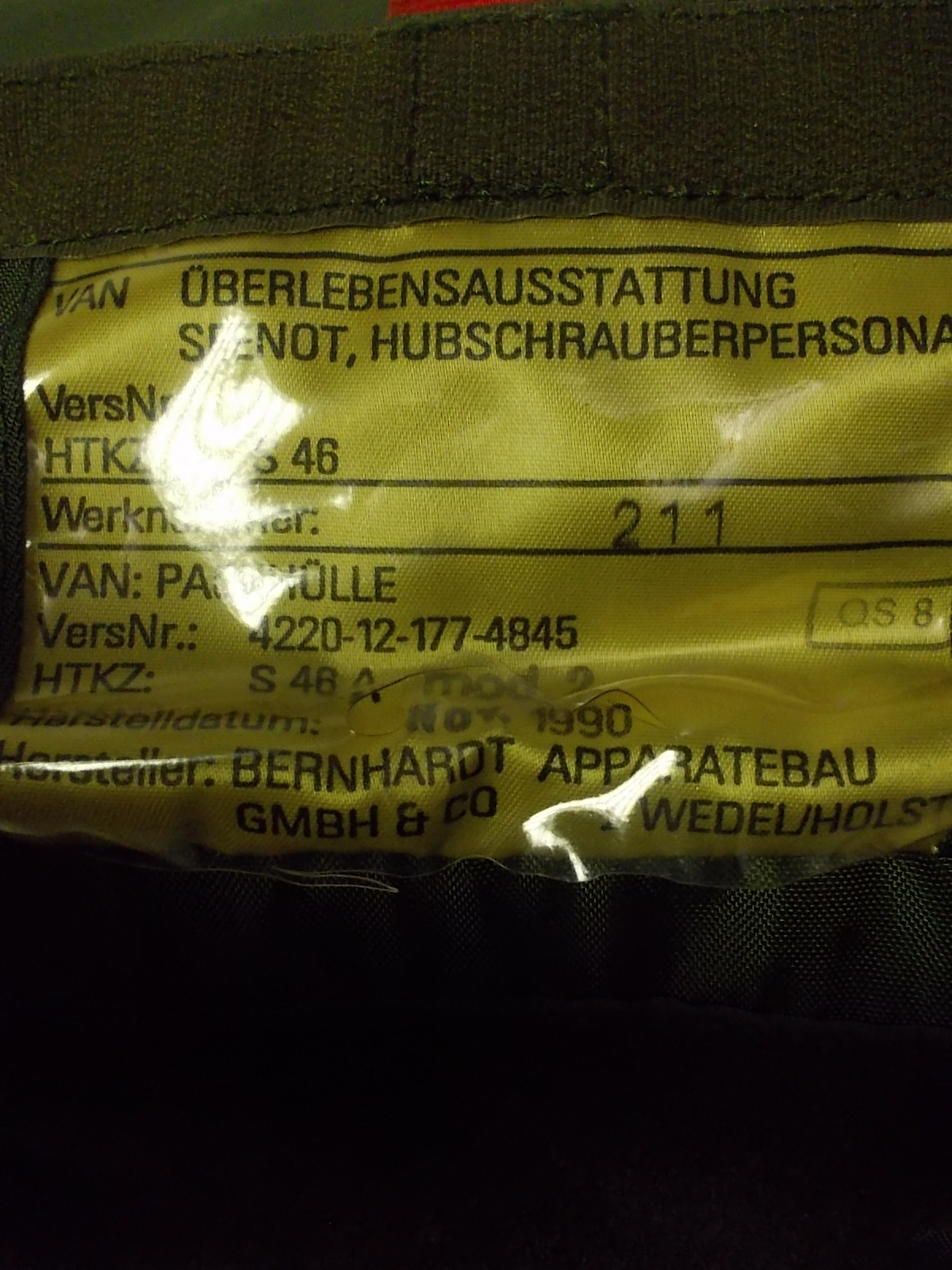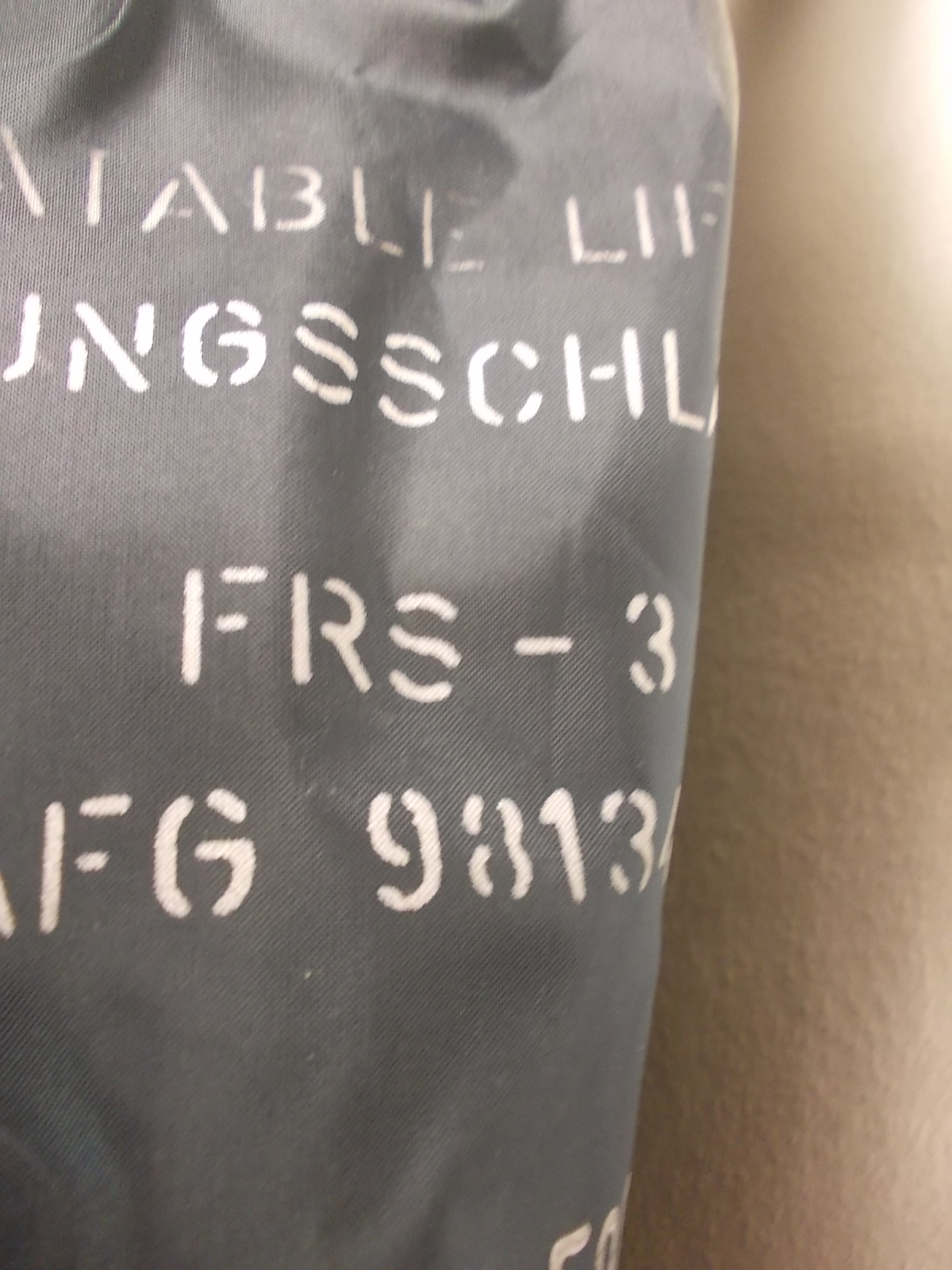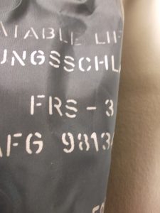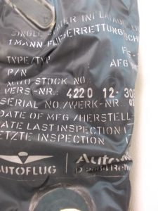 Original Personal Survival Pack (PSP) from AUTOFLUG was specially developed as a survival aid in helicopter crashes and for flight crews of fixed-wing aircraft. The PSP enables safe storage and convenient transport of survival equipment in different environments and climatic regions. PSP only contains the FRS – 3 rescue inflatable boat without Inflation device and CO 2 bottle, no other contents,The air rescue inflatable boat FRS-3 from AUTOFLUG is suitable for the entire flight crew sector. ,this PSP was only used for training purposes, PSP is used but in very good original condition,Only for Display, not for use !!Please note that all our items are pure collector items or display items. The items are not tested for real use and have no aeronautical exams or clearances. Use is at your own risk !