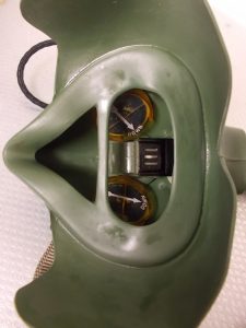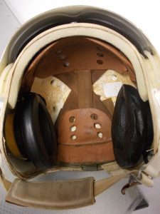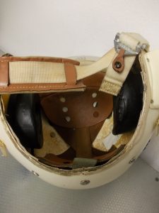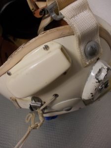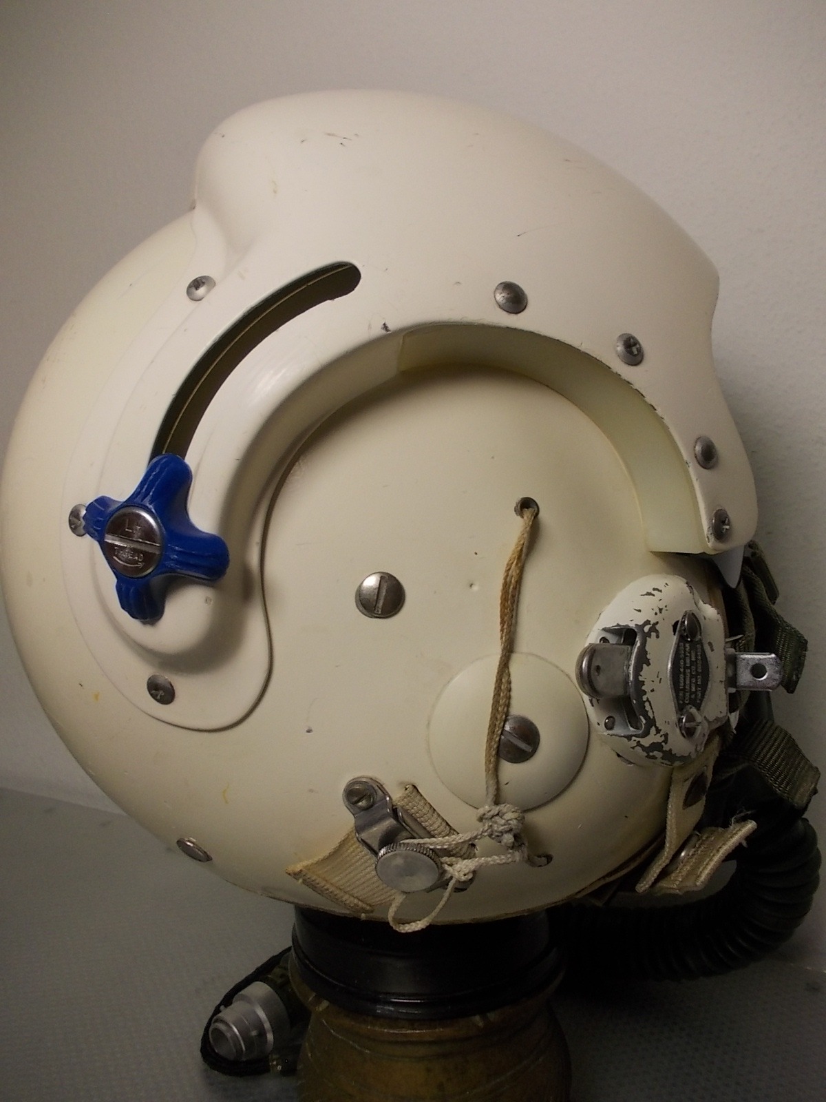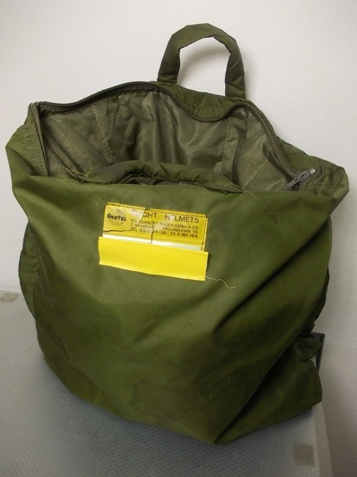 This is a original HGU 2AP/G flight helmet came from an retired German Airforce Pilot ,this helmet is a very rare piece in very good used condition,helmet is size Medium, helmet ist original painted white ,he has a dark and clear visor, these housings were used with the GAF with this paint finish,include is the original MS 22001 Oxygen Mask size Medium with bayos and connector Helmet and Mask are in some flight use original condition, helmet and mask is date 1959/60 65 years old, beautiful original helmet for display ! I purchased this helmet, complete with mask and helmet bag, directly from the pilot. The helmet was used by the pilot between 1969 and 1975 in the Fiat G-91 at the Fürstenfeldbruck, Leipheim, and Pferdsfeld (Bad Sobernheim/Nahe) airfields. At the end of 1975, he switched to the F-4F Phantom, where he then used other (better) helmets and also the second helmet bag. I know the pilot’s name. The helmet has some flight use with the corresponding signs of wear. The dark and clear visor appears to have been replaced before it was retired. Unfortunately, the outer canopy protective band is badly damaged from use. One of the earpieces is also damaged but repaired. The mask has some small, damaged rubber parts, consistent with its age. I only cleaned the helmet because it was very dirty due to its age. All parts are still original,Helmet has no breaks or cracks in the shell, The larger bag has the pilot’s name on it. Both bags are and the patch and sticker is cluded.Please note that all our items are pure collector items or display items. The items are not tested for real use and have no aeronautical exams or clearances. Use is at your own risk !