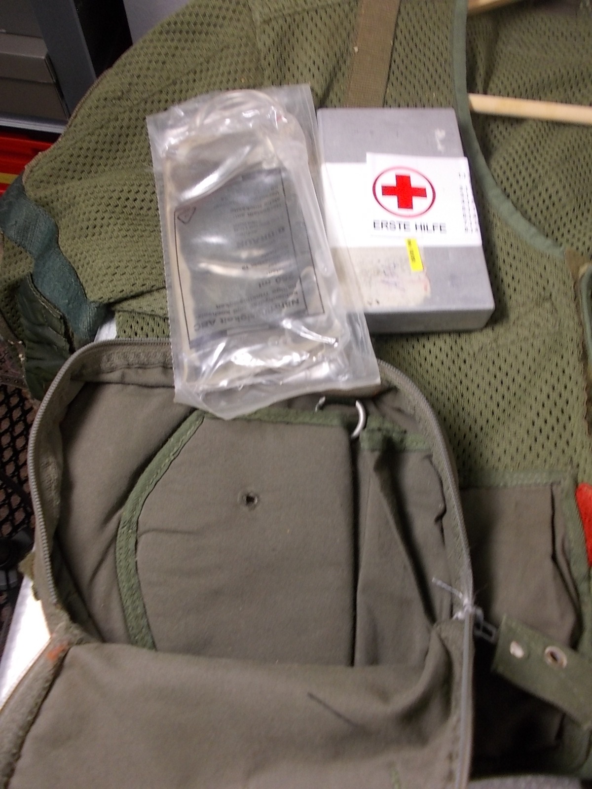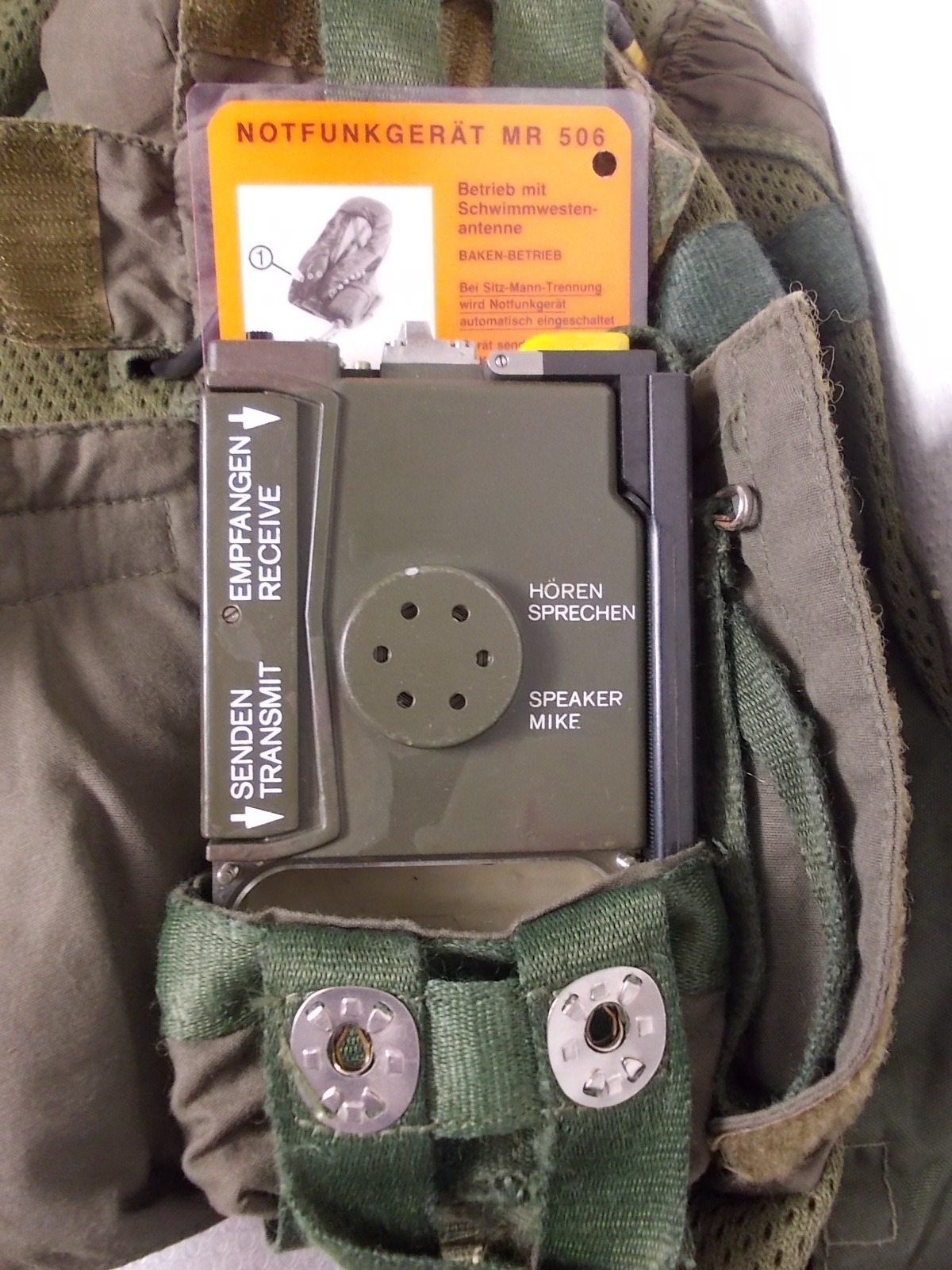 Original German Air Force Survival Vest SW 2 A for Tornado Elite Pilots, Survival Vest for German Air Force and Navy Tornado Pilots in normal flight used but good condition, no cracks or holes, about country execution, without life preserver, vest is with pouches for Survival Radio,Survival Radio antenna and weapon pouches,this vest has a second pocket on the side, unfortunately the top part of the pocket with the zipper is missing , also the yellow label !!!!!vest with this contents: MR 506 Suvival Radio without Battery!!, short manual for Suvival Radio, Medical Pak, Name Tag and Radio Antenna , nice item, used but very good condition, Please note that all our items are pure collector items or display items. The items are not tested for real use and have no aeronautical exams or clearances. Use is at your own risk !
