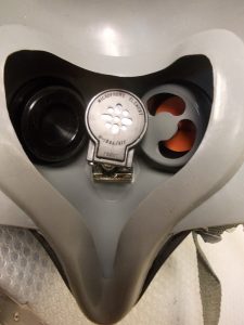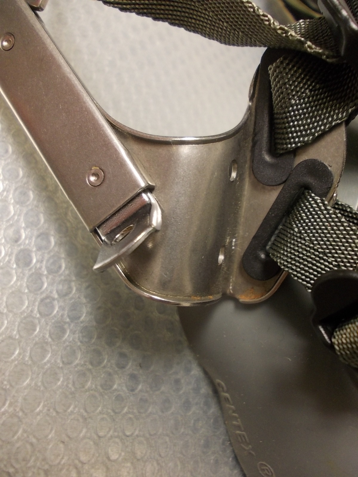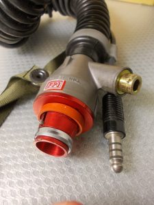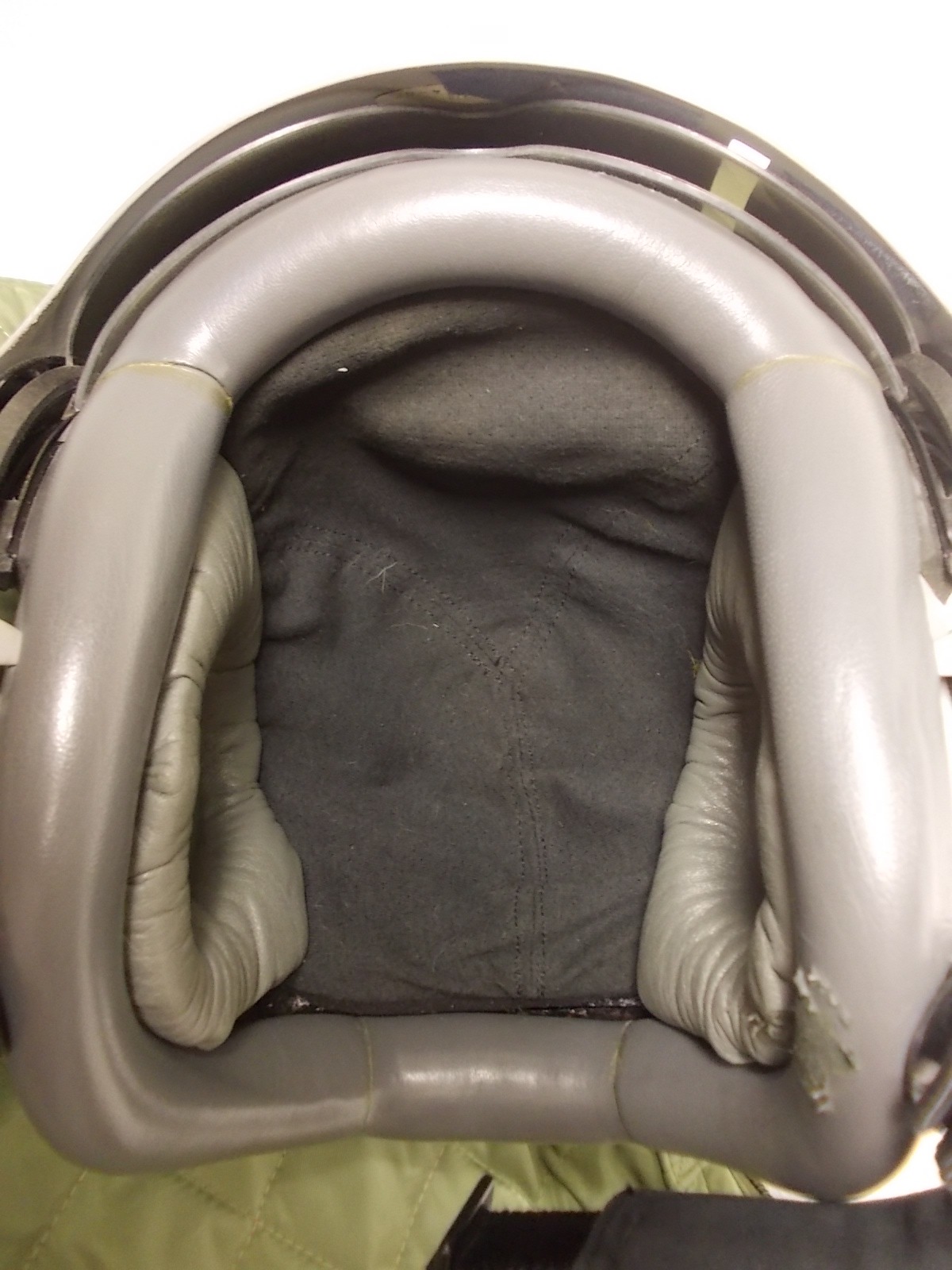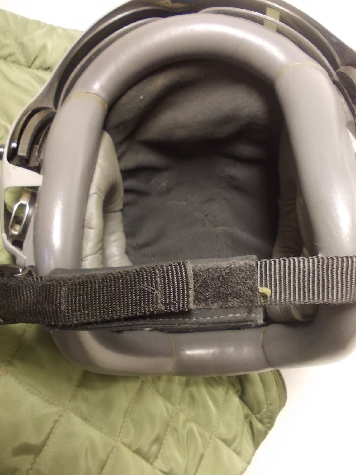 Original German Tornado Fighter Pilot Helmet HGU 55/G Flight Helmet with MBU 20/HALP mask and „WEA“, ,the WEA device is mounted at the left-hand side bayonet,the WEA (Wasser Entriegelungs Aktivierungseinheit) is a water activated opening device,this device contains a tablet that solves in water and that activates a spring to push the bayonet from the retainer, ,helmet size is Medium ,double visor dark and clear in very good condition, include a MBU 20/HALP mask with „WEA“ and black hose in size Medium Narrow ,complete with all avionic and plugs,chin strap (British model) quick disconnect type, no nap strap, gray fighter jock leather earcups , TPL liner, normal lightweight recievers,complete with all avionic and plugs , communications cord is the standard CX-4708A/AIC cable ,helmet and mask are normal flight use but in very good original condition,Unfortunately, the leather Edge Roll has a damage to the surface of the leather on the left side (see picture), Please note that all our items are pure collector items or display items. The items are not tested for real use and have no aeronautical exams or clearances. Use is at your own risk !