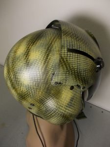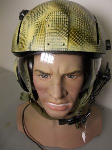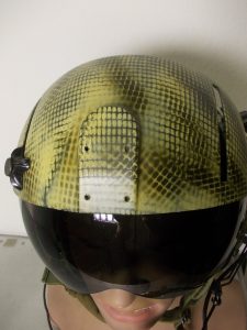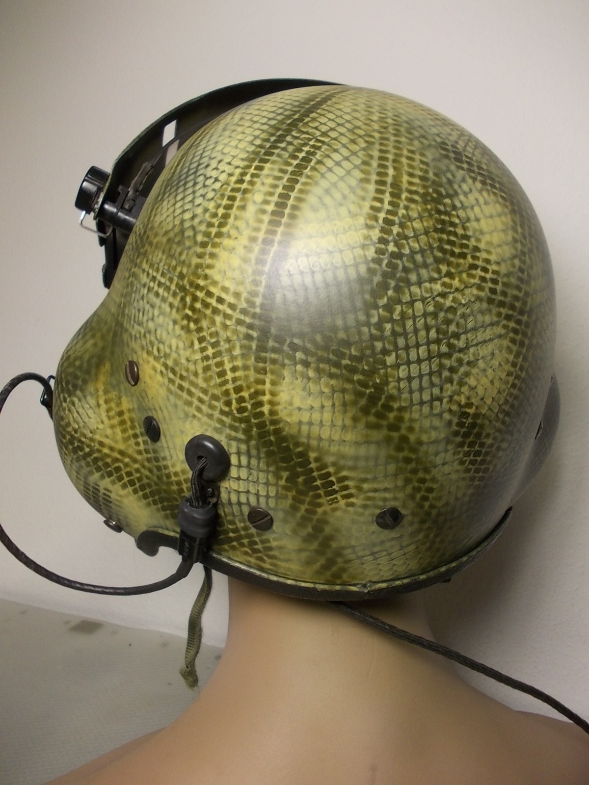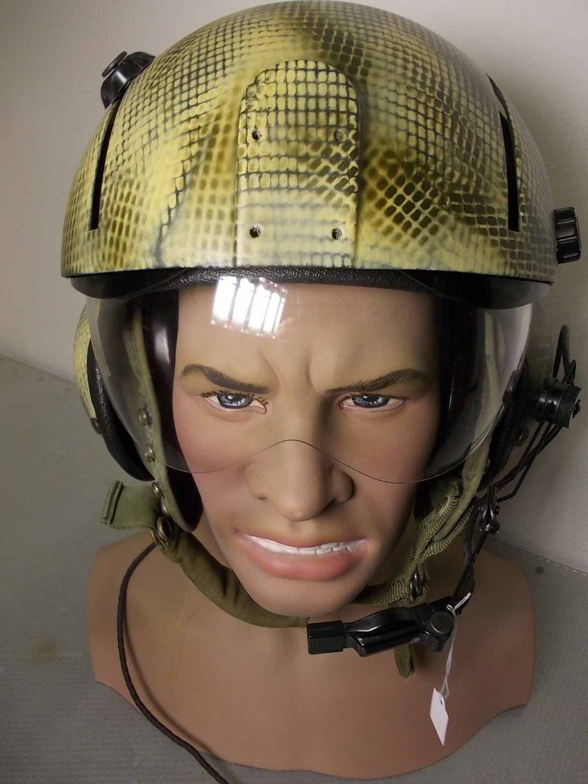 Original Gentex SPH 4 Helicopter Flight Helmet modified with double Visor Housing and visors dark and clear, the visor systems include optically correct, abrasion-resistant, polycarbonate lenses that protect the eyes from glare in exellent condition, helmet is in flight used , very good condition,helmet size is X-Large !!, helmet is custom made painted, very nice, all avionic and plugs are present, helmet is fitted with a sling suspension liner and had a nape and chin strap ,this size X-Large helmet weighed ca. 1.54 kg (3.4 lbs), 24 inch straight cord with U-174 plug and military communications consisting of 5 ohm earphones and a microphone is present ,nice display helmet in very good condition,note that all our items are pure collector items or display items. The items are not tested for real use and have no aeronautical exams or clearances. Use is at your own risk !