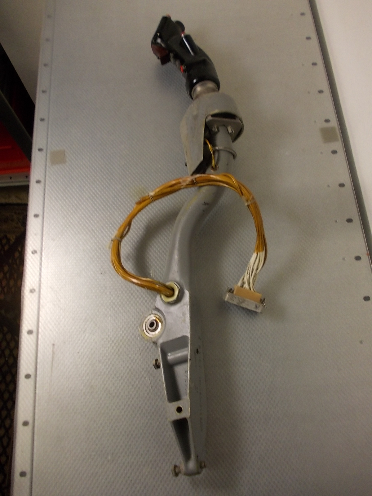 Original used Mach 2 + F-104 Pilot`s control stick with a B-8 grip used at German Air Force Starfighter, this is the stick for the rear seat in the 2 seater Starfighter, is complete with a stall warning control stick shaker with cover, it also has the aircraft interface wiring and male connector, the switches all appear to be functional, however this item is sold for ground display purposes only and according to the pictures and descriptions without warranty or certification of any kind, expressed or implied,stick shaker is a mechanical device designed to rapidly and noisily vibrate the control yoke (the „stick“) of an aircraft, warning the flight crew that an imminent aerodynamic stall has been detected,stick is in normal flight use very good original condition,all buttons and switches are functional, rare and hard to find !!Please note that all our items are pure collector items or display items. The items are not tested for real use and have no aeronautical exams or clearances. Use is at your own risk !