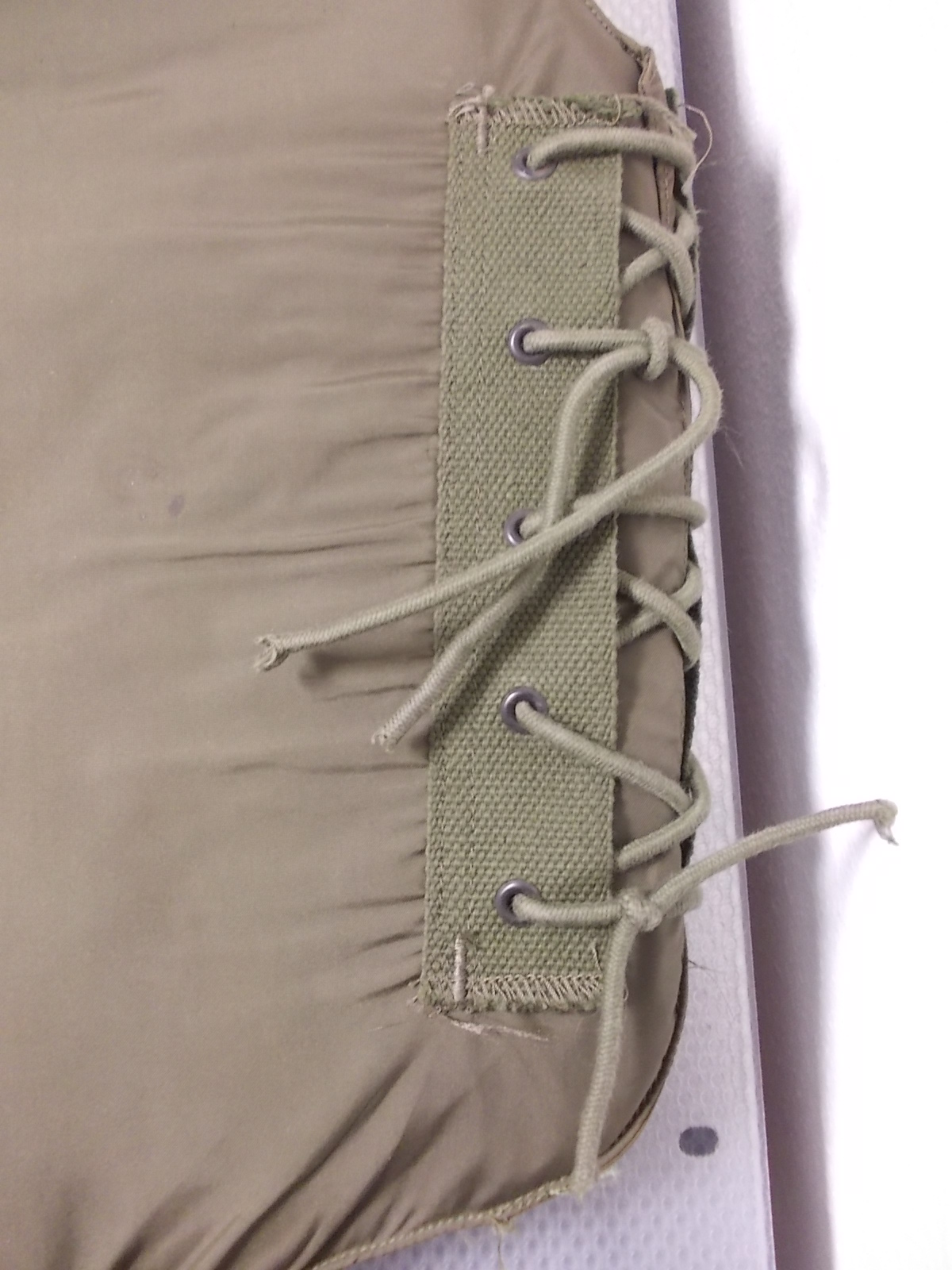 An excellent example of a genuine issued U.S. Vietnam War era M-1952A Body Armor Vest. The M-1952A flak vest saw continuous service during the Vietnam War by USMC soldiers and pilots, even though it was superseded by the M69 vest it continued to be used throughout the war. The vest is in very good condition with some typical staining to the fabric that is typical for these vests, Its armour feature is 12 piles of ballistic nylon and has a zipped front enclosure along with poppers, both the poppers and zipper are in excellent working order, with elastic draw cords to either side, the vest has hand grenade hangers on both cargo pockets. All the original manufacture labels are present, it was made 1953, Manufactured by Stein Brothers Manuf. Co. Zipper functions fine. Real nice ,excellent condition, no tears or holes or other defects, very small stains on the back , Small Size No US field gear collection is complete without this vest!